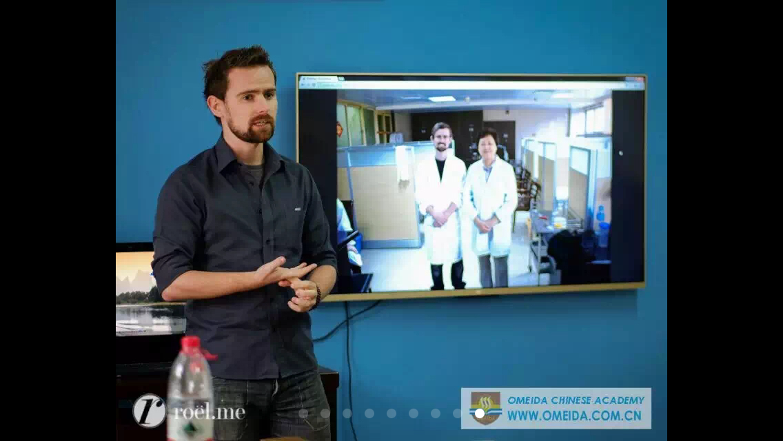 Giving a talk on Chinese Medicine at Omedia Language College, Yangshuo, China.